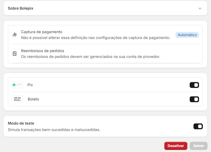 Por fim, **ative **os métodos que deseja utilizar e salve.