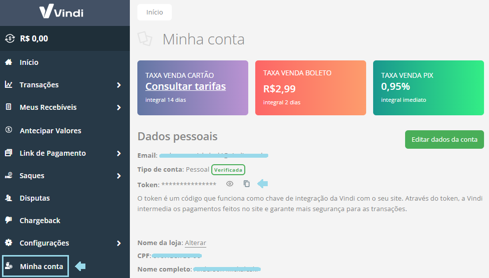 Para acessar o Token da sua conta Vindi Commerce e integrar nosso sistema de pagamentos online à sua plataforma de e-commerce, é necessário que sua conta na Vindi já esteja verificada.